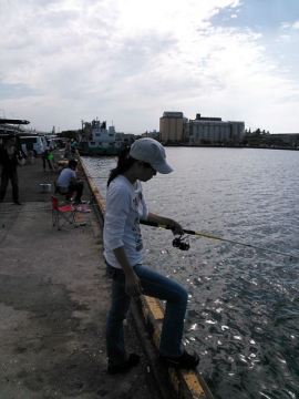 | 9月21日(日)に家族で釣りに行ってきました。(*^_^*) 気温は28℃ 中潮の満潮で無風・・・・ 初めから休む間もなく入れ食い状態で沢山釣れたのは いいのだけど・・・ 途中にボラの大群さんのお通りの後、カサゴ?が湧いていて 釣りたくないのに釣れる始末・・(-_-;) この魚は背びれに毒があるらしく、素手で掴んでは駄目だそうです。 知らない私は運良く毒に当たらず取り外しましたが、 後で知ってびっくら!しました。(>_<) そうそう!びっくらしたと言えば、今回初めて魚の鳴き声を聞きました。 針から外そうと魚を掴んだら「きゅーっ!」って・・・ 写真はびっくりしすぎて魚を放り出した瞬間を主人が激写してまして・・ 因みに私は「うぎゃーっ」って鳴きました。(-_-) そんなこんなで午後2時ぐらいから2時間ぐらいで アジ49匹・いわし10匹?・小鯖3匹の爆釣でした(^_^)v 今晩はアジの南蛮漬けで一杯♫ ふふふっ♪  by 太刀魚を一回でいいから釣ってみたい女。。あぁ太刀魚様(T_T) 小松 |